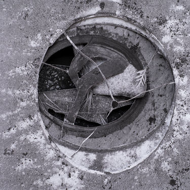 In a series of collages made of black and white prints Serlin extracts from close-up photographs of headstones and old marble textures, the nothingness of what was cut out of them. What was cut is the symbol, the form, the sign.